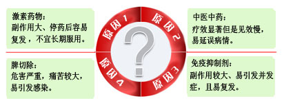 4、中医中药。这种方法其特点是副作用小、少反复,但是治疗时间长患者往往不能坚持且不适用于血小板减少非常严重的患者。