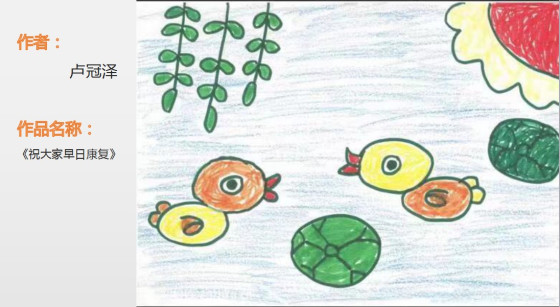济南血液病医院医护人员的小家属卢冠泽,稚嫩的笔触表达了美好的愿望,他希望小患者们能够早日康复,为大家送上深深的祝福。