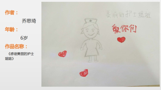 小患者小小年纪便有一颗感恩的心,平时护士姐姐无微不至的照顾给乔思琦小朋友留下了深刻的印象,所以,在治疗之余,用铅笔记录下护士姐姐的样子,用自己的方式表达对医护人员满满的爱意和谢意。