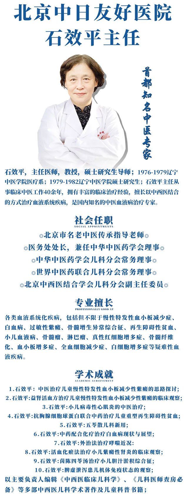 北京中日友好医院中医专家石效平教授联合五代中医世家传承人史培泉主任、享国务院特殊津贴专家葛林阜院长、北京协和医学院博士何学鹏主任、中医科学科带头人董政军主任等资深中西医专家;