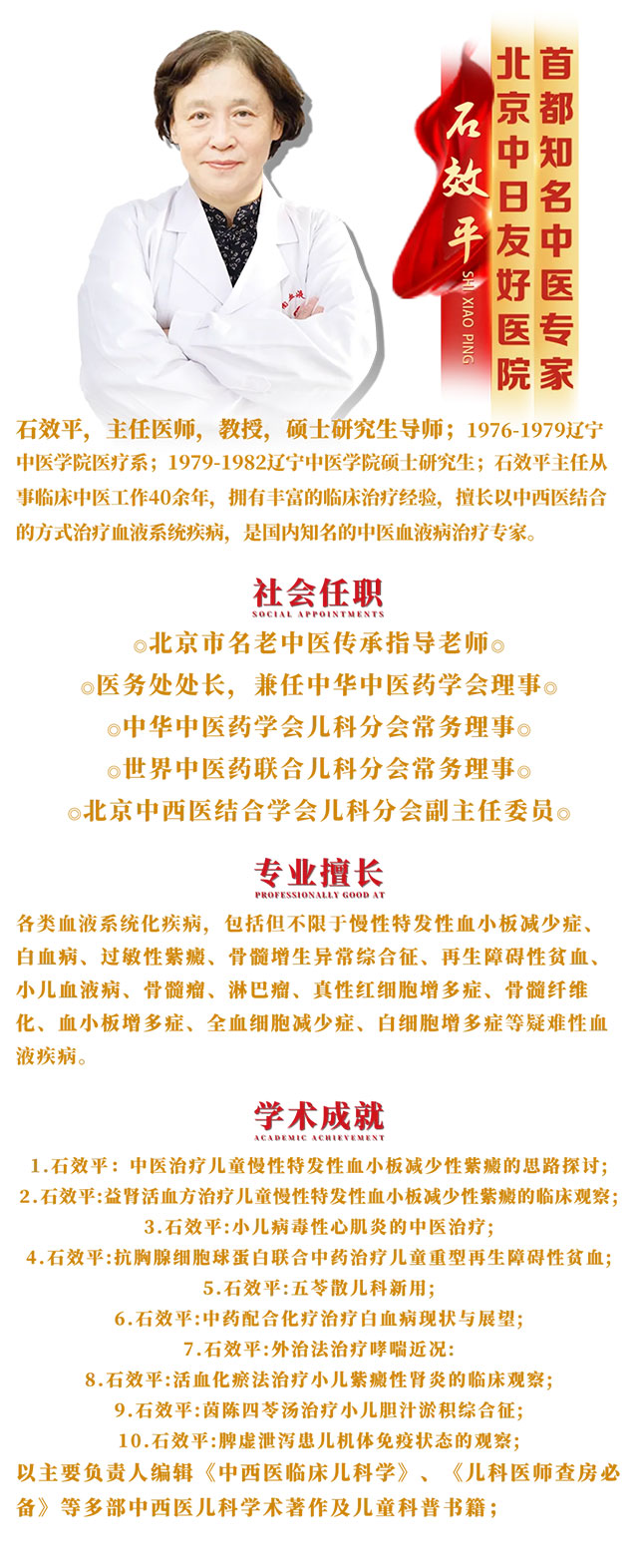 为惠及我院血液病患者,推动中西医结合诊疗血液病发展,特邀北京中日友好医院中医专家—石效平教授,于2025年6月15日(周日)莅临济南血液病医院,开展第45期《中医看血液》专题讲座,并举行联合会诊活动!