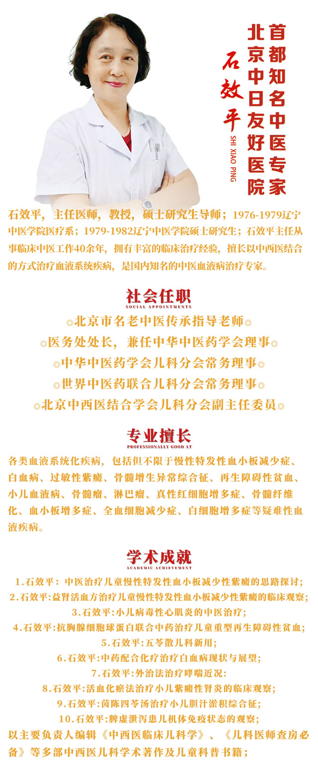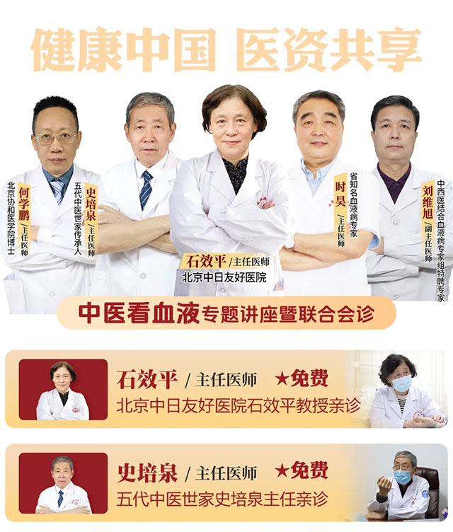 盛夏七月,济南血液病医院再次为您带来国家级中医诊疗资源——特邀北京中日友好医院中医专家石效平教授,于2025年7月20日(周日)亲临我院,开展第46期《中医看血液》专题讲座,并举行多学科联合会诊活动!此次活动将延续"中医辨证+西医精准检测"的诊疗模式,为各类血液病患者提供个性化中西医结合方案,助力患者突破治疗瓶颈,重获健康希望!