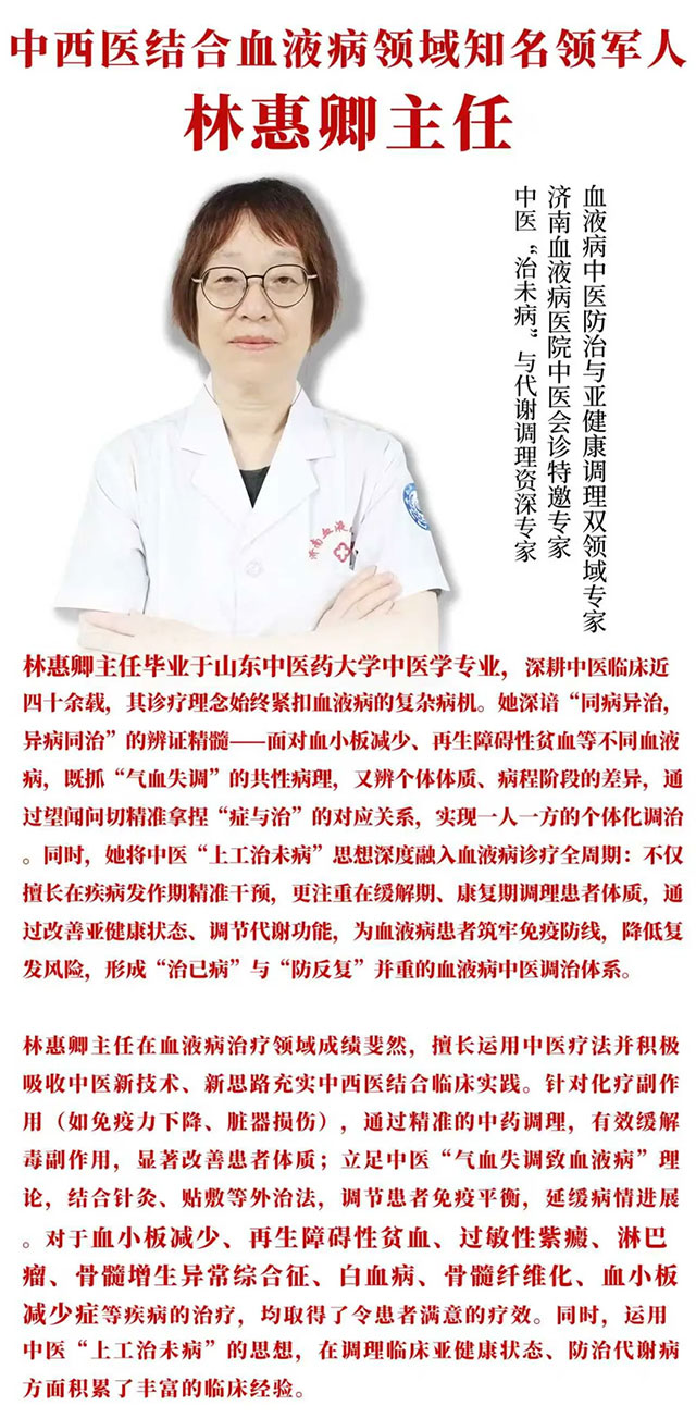 为响应国家分级诊疗政策,让广大血液病患者享受到国内顶尖诊疗服务,济南血液病医院特邀四位权威专家于2025年7月25-28日开展「暑期名医会诊周」。本次活动涵盖专题讲座、中西医联合会诊、中医特色诊疗等多元形式,精准解决疑难血液病诊疗难题,现面向广大患者开放限量预约!