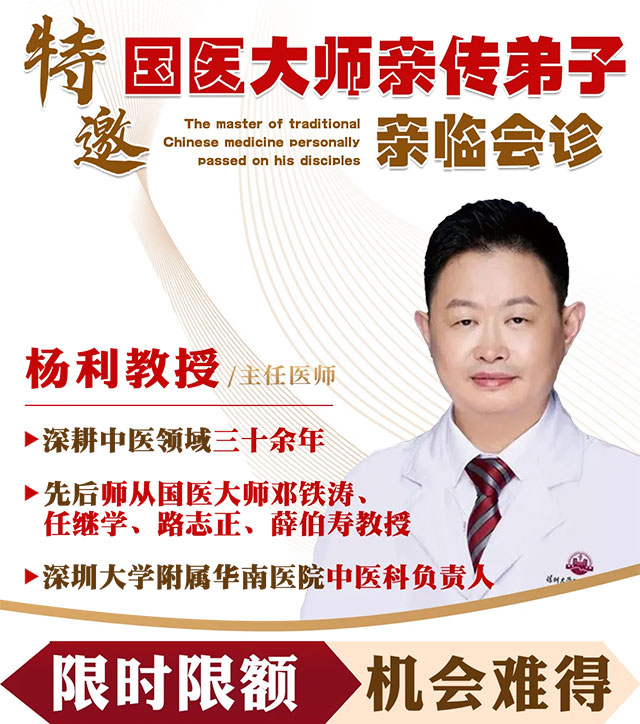 特邀国医大师亲传弟子、知名中医专家——杨利教授,于