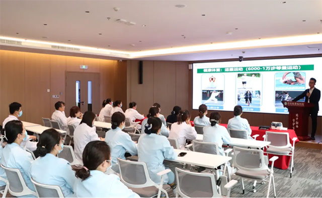 讲座现场,于湖主任紧密结合医护人员的职业特点与健康需求,展开了全面且贴合实际的健康科普讲解。从突发公共卫生事故的应急处理,到心脑血管疾病的科学防治;从肩周炎、颈椎病、腰椎病、静脉曲张等常见职业病的预防技巧,到合理膳食、科学运动、心理平衡的健康体重管理方法;再到室内外空气污染、扬沙、雾霾、甲醛等环境因素对人体的危害及过敏性鼻炎的防护知识,于湖主任用通俗易懂的语言,将专业的健康知识与实用的急救技能娓娓道来,让在场的每一位医护人员都能轻松理解、快速掌握。